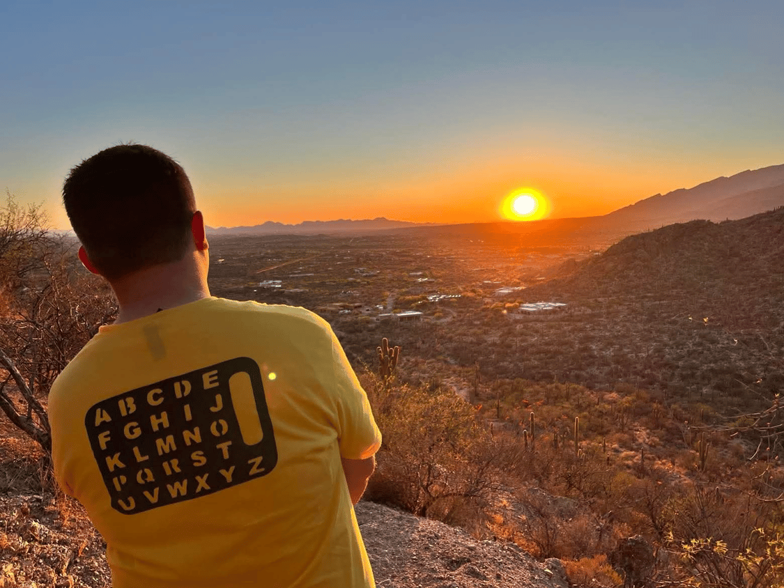 What is on Ashtonβs t-shirt? The Spelling board! and in front of him? A life time of possibilities!