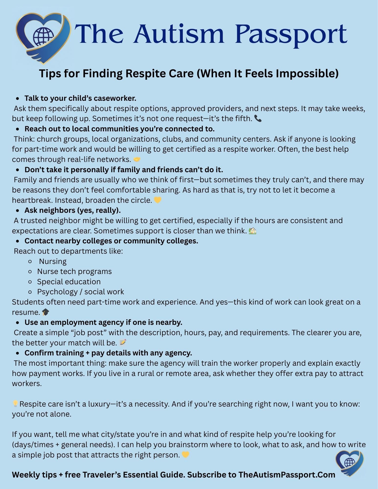 If this message touched your heart or reminded you of someone who could use a little encouragement, please forward it to a friend or invite them to subscribe to The Autism Passport Newsletter!